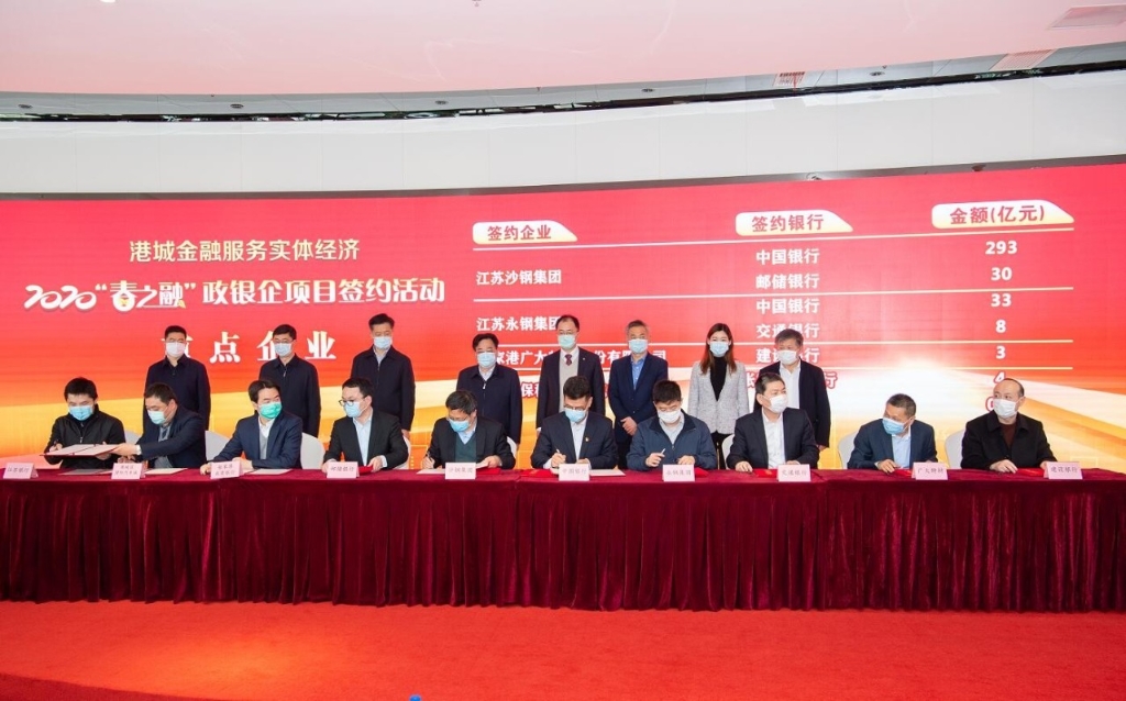2月24日下午,張家港市舉辦港城金融服務實體經濟2020“春之融”政銀企項目簽約活動。集團第一副總會計師尉國代表沙鋼集團與中國銀行和郵政儲蓄銀行分別簽訂293億元和30億元的授信項目。